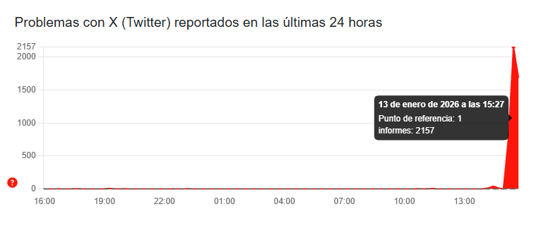 La plataforma de redes sociales X, anteriormente conocida como Twitter, ha sufrido este martes una interrupción de servicio a escala global que ha dejado desconectados a miles de usuarios. La incidencia, que irónicamente ha coincidido con la fecha del martes 13, comenzó a reportarse a primera hora de la tarde en Europa (mañana en América), generando una oleada de quejas en otras plataformas digitales.